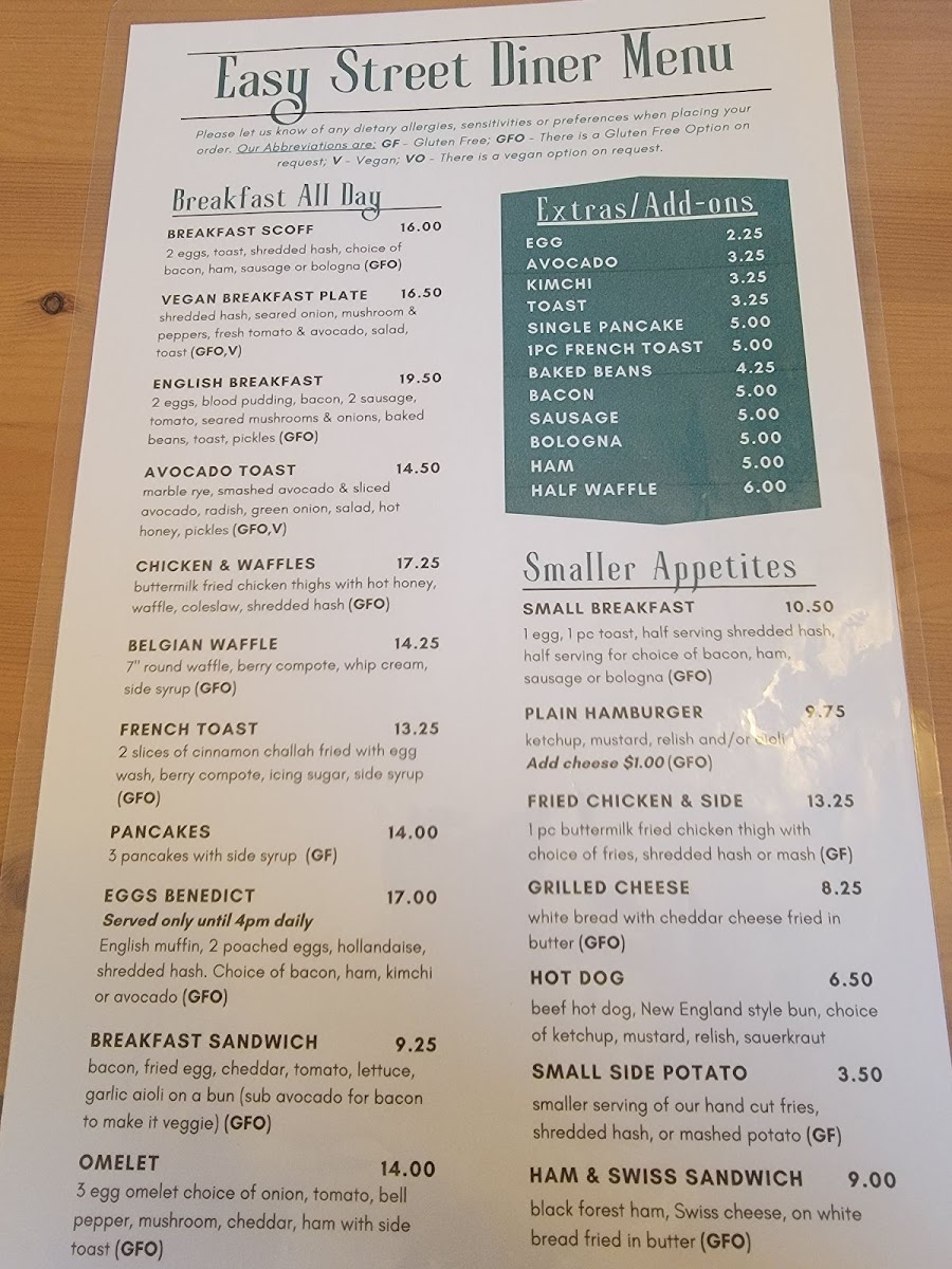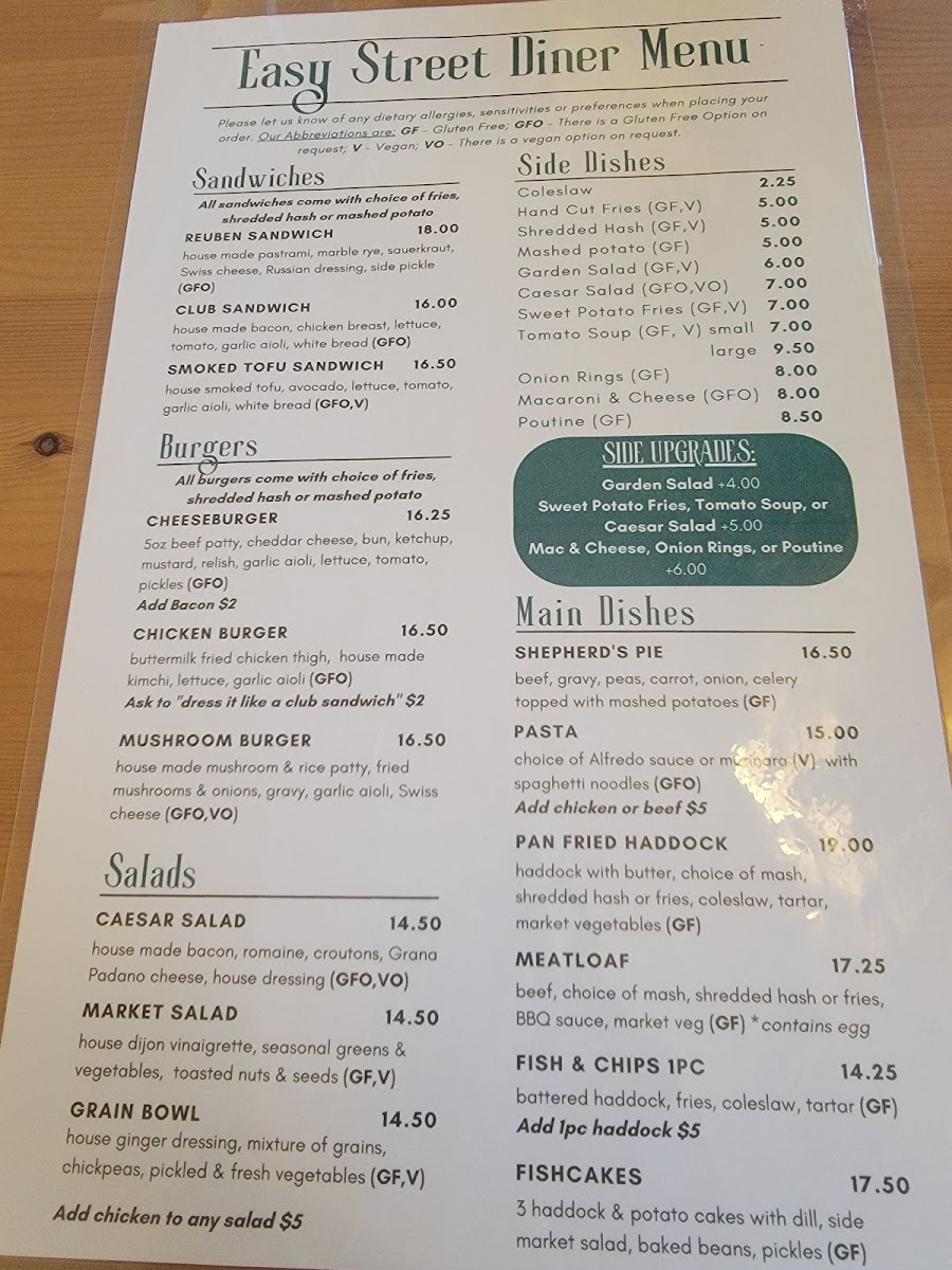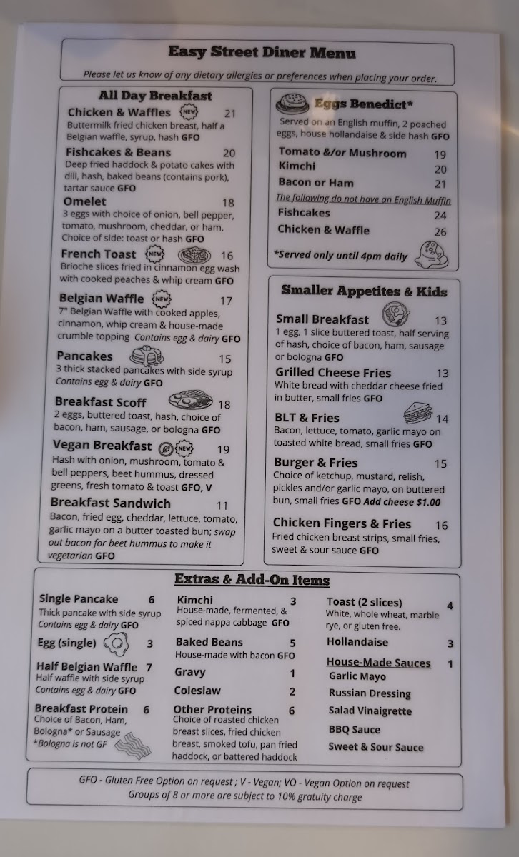 Easy Street Diner Menu